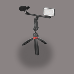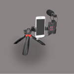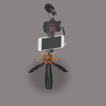توضیحات اقلام= یک پایه نگهدارنده موبایل یک نور LED یک میکروفون شاتگان یک سه پایه